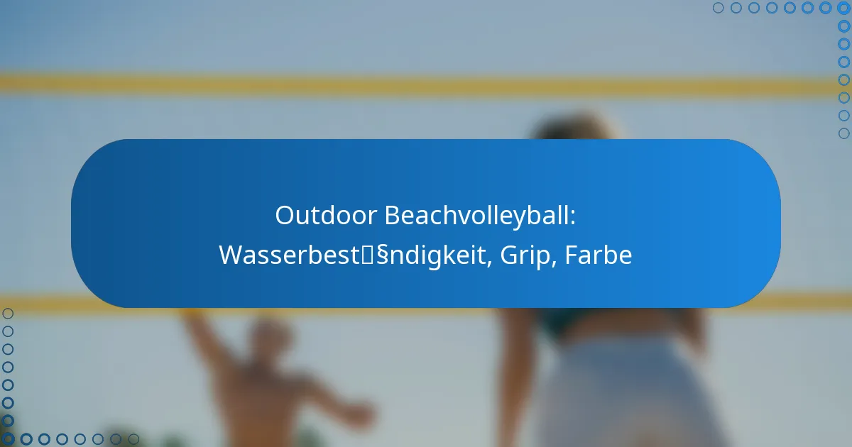 Outdoor-Strandvolleyballs sind mit spezifischen Eigenschaften ausgestattet, die die Leistung in sandigen und nassen Bedingungen verbessern. Zu den wichtigsten Merkmalen gehören Wasserbeständigkeit, Grip und Farbvisibilität, die alle einen erheblichen Einfluss auf das Spiel und die Spielerfahrung haben.